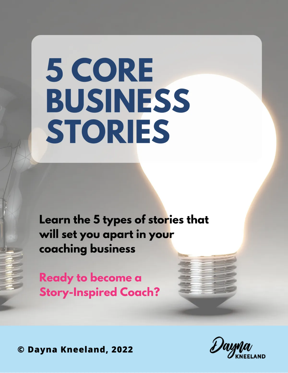 To help you get started, I've created a handbook with 5 Core Business Stories you can share in your coaching, marketing, and selling.